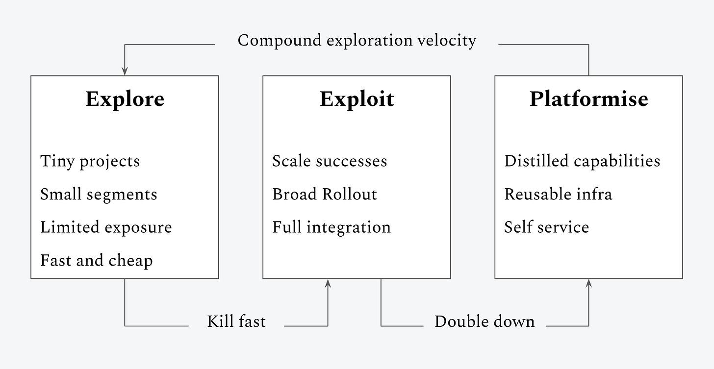 Explore → Exploit → Platformise.
